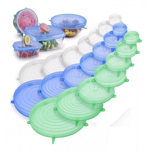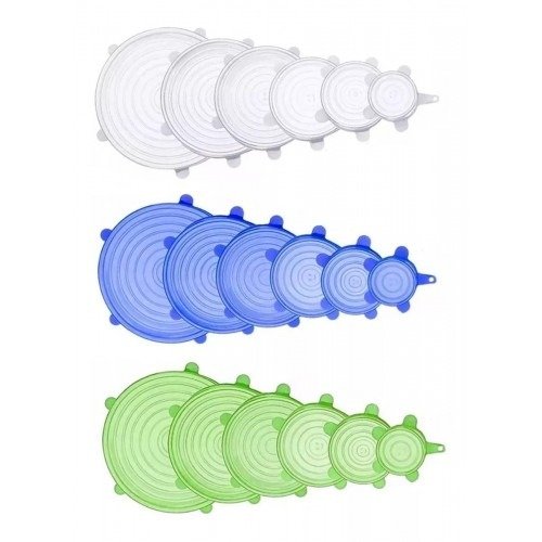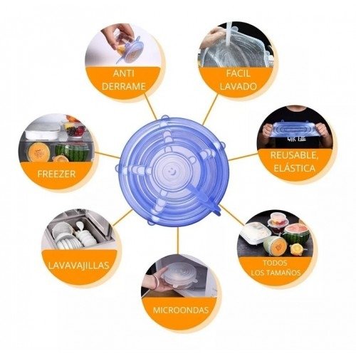 Con las tapas elásticas de silicona cree un sello perfecto en cualquier recipiente de vidrio, plástico o metal, también pueden servir como reemplazo de las tapas perdidas para recipientes de forma redonda.